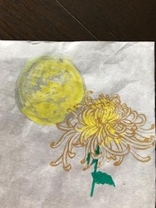 満月と菊花。共鳴しあうような二つを現した絵。